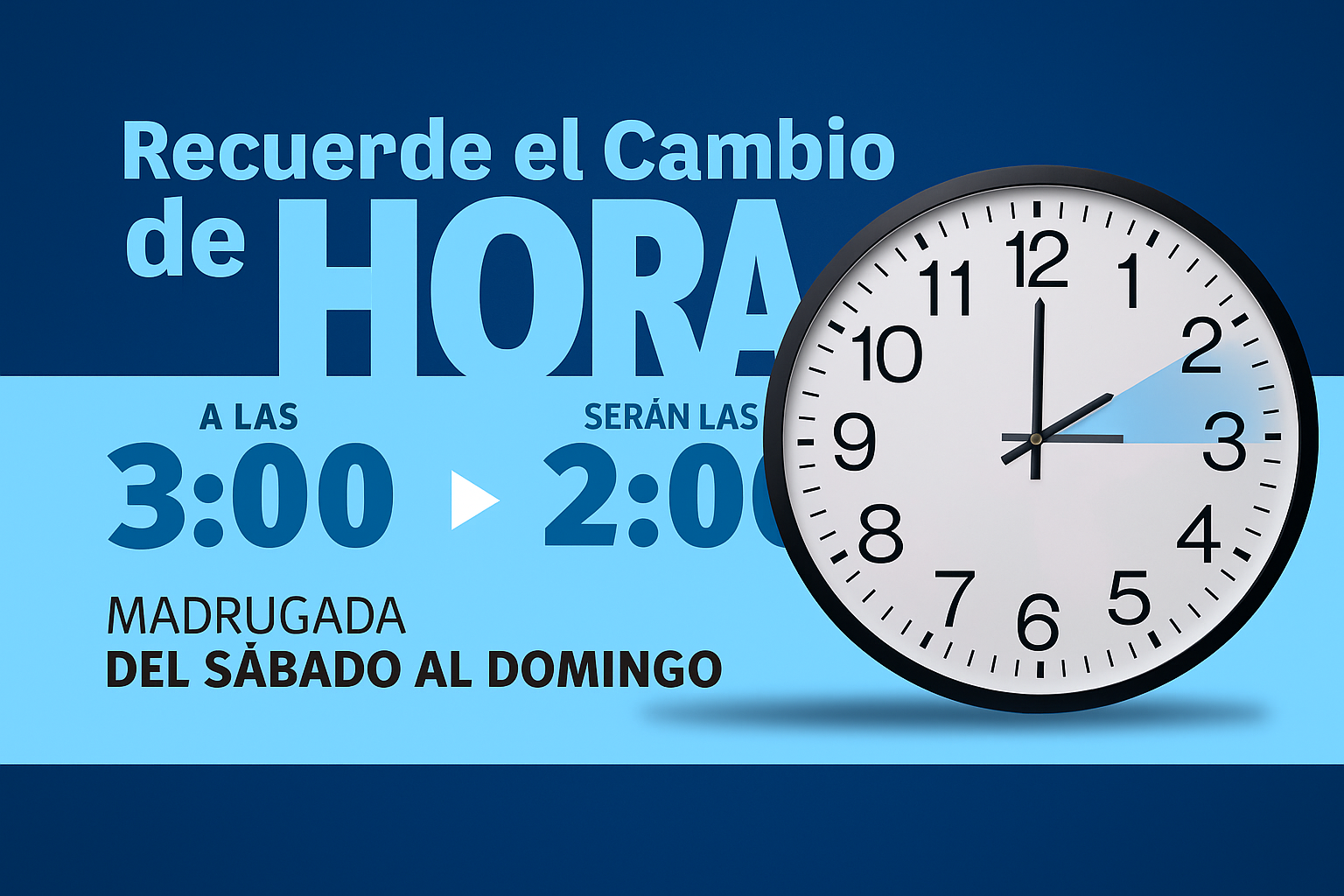 SE RETRASARÁ en 60 minutos el último domingo del mes de octubre (día 26) a las 03:00 h. de la madrugada.